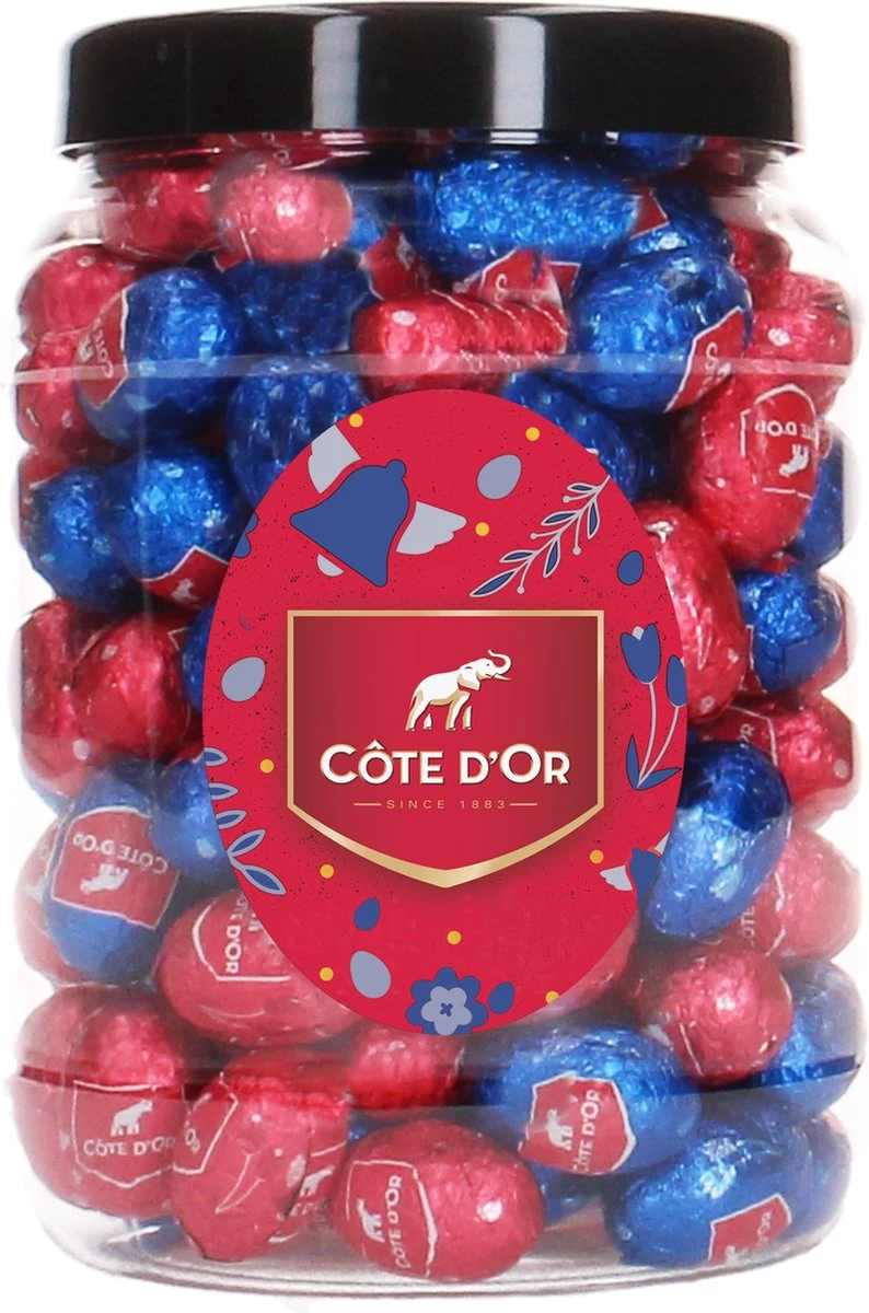 De Paashaas is terug in het land en je weet wat dat betekent. De overheerlijke paaseitjes van Côte d’Or zijn terug! In deze Mixxboxx is 1100g aan tedere en smeuïge paaseitjes te vinden. De rode paaseitjes zijn in melkchocolade met pralinévulling en de blauwe eitjes zijn in pure chocolade met pralinévulling.