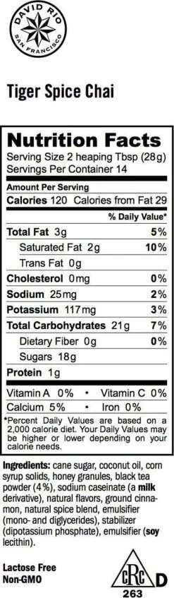 David Rio Chai is gemaakt met de beste ingrediënten om met een uitstekende smaak te overtuigen. De gebruikte kruiden komen uitsluitend voort uit duurzame biologische landbouw. Daarnaast vormen premium thee, honing en rietsuiker een puur natuurlijke basis. Elk chai-product van David Rio is gecertificeerd koosjer en bevat geen gehydrogeneerde vetten en gluten.