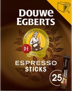 Douwe Egberts Espresso Sticks geven je net even die extra kick met een krachtige koffie in een handomdraai. De blend van donker gebrande Robusta bonen zorgt voor een volle smaak. Op ieder moment en overal door de handige zakjes om mee te nemen.