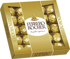 Ferrero Rocher biedt een unieke smaakervaring van contrasterende lagen: een hele knapperige hazelnoot in het hart, een heerlijke romige hazelnootvulling, een knapperige wafelschelp bedekt met chocolade en zacht geroosterde stukjes. En dankzij de onnavolgbare gouden verpakking is Ferrero Rocher nog unieker en specialer De schoonheid van goud, zorg en oneindige aandacht voor kwaliteit en hazelnoten; het is geen verrassing dat Ferrero Rocher over de hele wereld geliefd, begaafd en gewaardeerd is. Ferrero Rocher brengt ons dichter bij onze geliefden en de mensen om wie we geven.