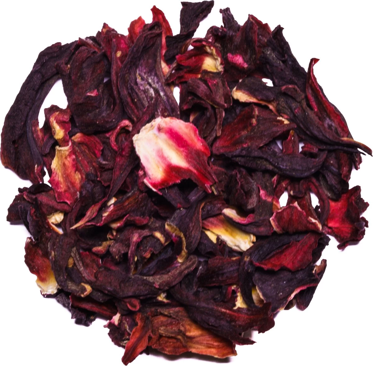 Hibiscus ook wel bekend als roselle is een eenjarige struikachtige plant die veel voorkomt in tropische gebieden. Na het uitvallen van de bloemen zwellen de rode kelken op klaar om geoogst te worden. Dit gebeurt met de hand, waarna de hibiscusbloesem gedroogd wordt en verwerkt tot kruidenthee. De bladeren van de hibiscus plant worden niet verwerkt tot thee. Toch gaan deze niet verloren en worden hier vezels van gemaakt of dient het als veevoer. Thee is niet de enige drank waar hibiscus voor gebruikt wordt. Zo zijn er ook andere koude dranken, alcoholische dranken en zoetwaren waarin hibiscus een populaire toevoeging is. In Afrika worden verse hibiscus bladeren gekookt en gebruikt als een bijgerecht met geplette pinda’s. De jonge bladeren kunnen rauw gegeten worden of verwerkt in een salade.