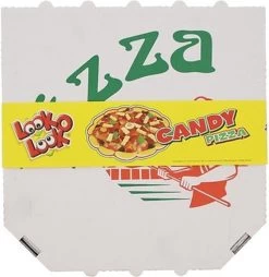“Snoepjes pizza Look o Look – Deze zeer originele pizza bestaat uit 435 gr snoep in verschillende maten, vormen en smakken. Deze nep pizza heeft een diameter van ongeveer 22 cm. Het geheel is geleverd in een pizzadoos van 24 x 24 cm. Dit originele product is perfect voor een kinderfeest. ”