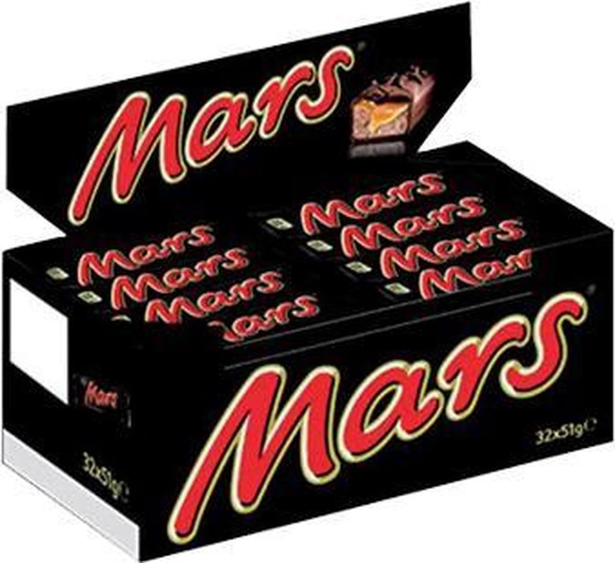 Deze verpakking bevat 32 Mars repen à 51 gram