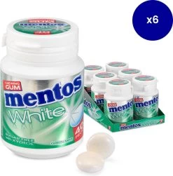 | Verpakkingsinhoud | 6 potten met Mentos suikervrije kauwgom in de smaak "green mint" met in elke pot 40 stuks. |