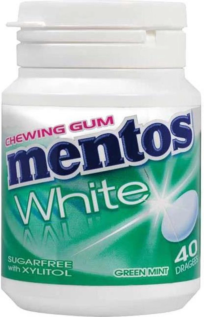 Mentos White met Green Mint smaak is een lekkere kauwgom met een sterke mintsmaak. Zorgt voor een aangename frisse adem. Wordt geleverd per 6 potten met in elke pot 40 stuks.