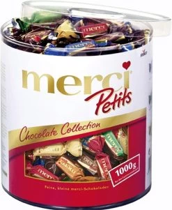 Mix van individueel verpakte gevulde en ongevulde chocoladespecialiteiten van Merci (ongeveer 167 stuks)