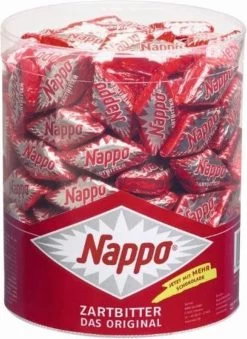 Individueel verpakte diamanten (circa 200 stuks) gemaakt van Nederlandse nougat met een laagje pure chocolade. De klassieker sinds 1925. Donkere chocolade van Nappo is cult. Want de heerlijke diamanten staan al bijna een eeuw voor puur genieten en uitbundig snackplezier. De lekkernijen worden bereid uit de beste Hollandse nougat en bieden heerlijk kauwplezier. Een laagje fijne donkere chocolade vult de specialiteit aan en maakt er uiteindelijk een absoluut smaakhoogtepunt van.