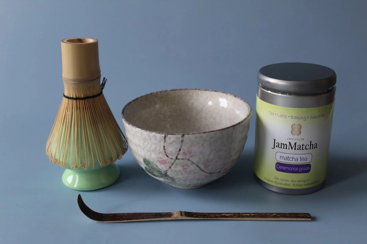 Je kan de eeuwenoude Japanse tradities in huis brengen met de complete Matcha Set van JamMatcha – Uitgerust met een bamboo klopper, klopper houder, matcha lepel, prachtige Japanse keramieken kom en natuurlijk een potje ceremoniële matcha poeder.