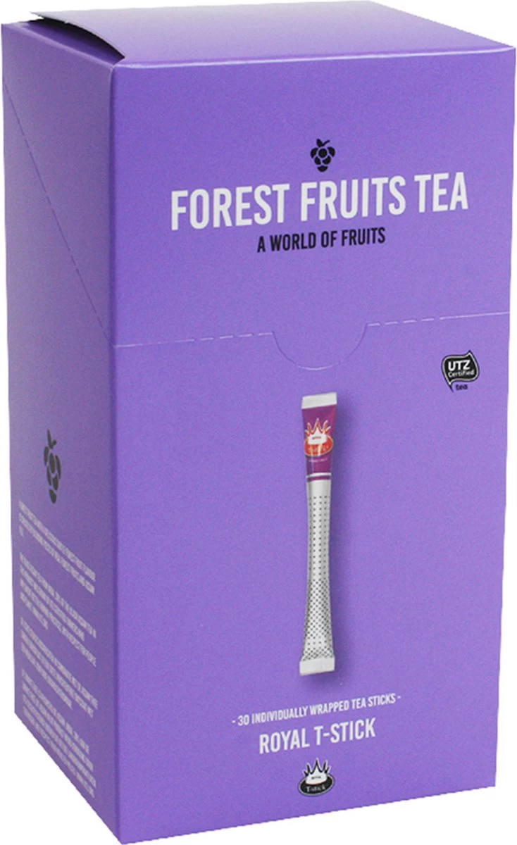 Deze handige theesticks van het merk Royal-T hebben de smaak “Bosvruchten”. De verpakking bevat 30 verpakte sticks die je zo in het hete water kunt roeren.