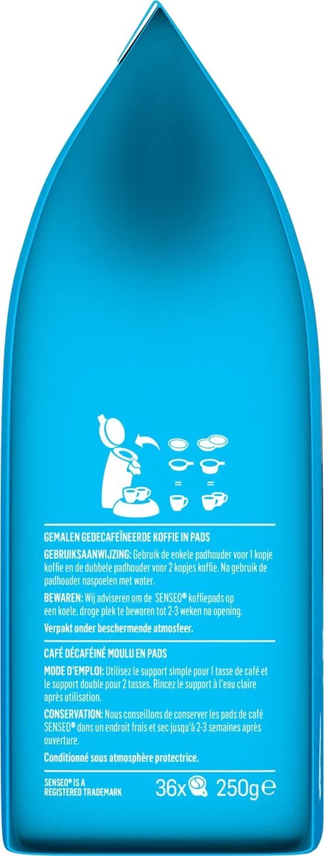 Een evenwichtige koffie van medium gebrande cafeïnevrije Arabica- en Robustabonen voor een rijke smaak, met een heerlijke crema laag. Geniet met één druk op de knop van een vers kopje Senseo® Decaf koffie.