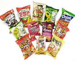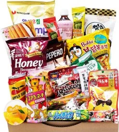 Dit verrassingspakket bevat minstens 25 stuks, populaire snacks, drank, snoep, koekje en 1 pak instant Korean noedel.