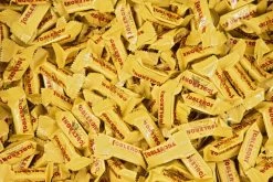 Smeuïge Zwitserse melk chocolade bonbons met honing en amandel nougat.